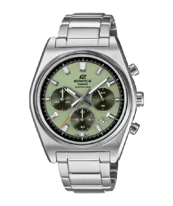 Introducing the EDIFICE motorsports chronograph inspired by the classic sportscar. Striking index bars join the legendary 3-6-9 inset dial layout in a time-honored sporty design. The smaller diameter of the case presents an elegant look of sheer speed. With sapphire crystal, stainless-steel case, and substantial stainless-steel band, this timepiece is water resistant up to 10 bars. This sporty, classic chronograph takes you from casual settings to business meetings in a split second.