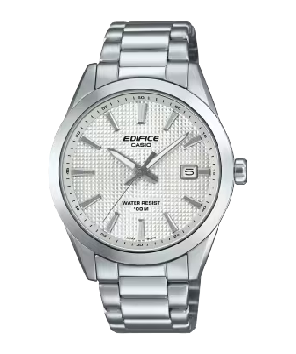 Introducing an EDIFICE for motorsports fans and car enthusiasts — a refined timepiece sporting the legendary Clous de Paris pattern. The EFV-160D dial features a three-hand layout with a date display, complemented by the striking sophistication of the Clous de Paris raised pyramid pattern. With a 40 mm stainless-steel case and new band shape, this timepiece delivers a natural fit for all-day comfort. The glass is slightly curved for even better visibility, while 100-meter water resistance leaves you to focus on more exciting things. Functional and stylish — an EDIFICE that makes life that much sweeter.