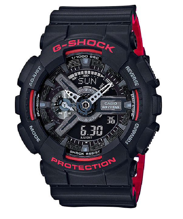 From G-SHOCK, which strives for toughness, comes a Black & Red Series that makes the most of G-SHOCK colors. G-SHOCK brand colors are used as the main case and band colors. Case size (L? W? H) 55 ? 51.2 ? 16.9 mm Weight 72 g