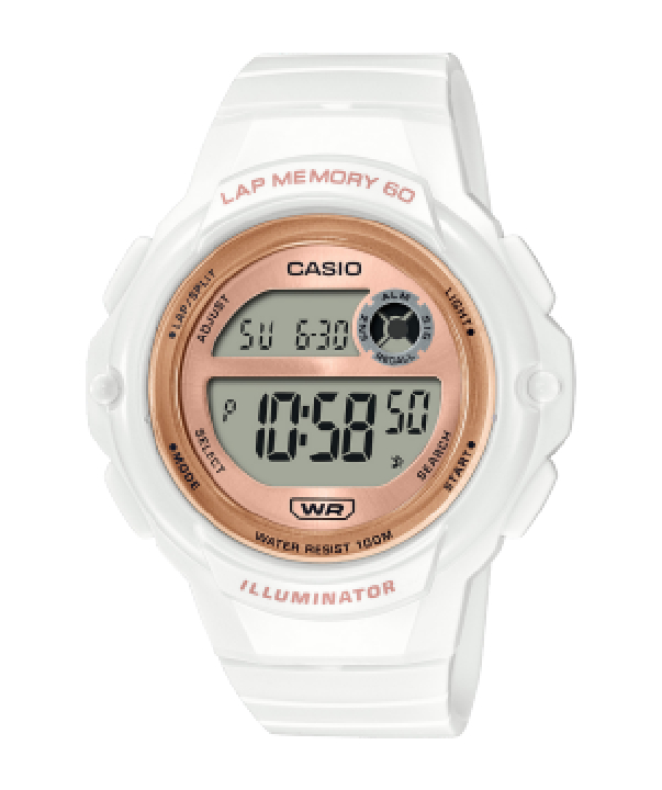 Get more out of your workouts with 60-lap memory delivered straight to your wrist. Enjoy the clean round case design for an easy read at a glance, even while running. Water resistance up to 100 meters to free you from worry when out in the rain, an LED light for a clear, easy read in lit and dark spaces, timer, and other workout-friendly functions so that you can focus on achieving your running goals. Calendar and dual time functions prepare you for peak performance, whether you’re on or off the track.