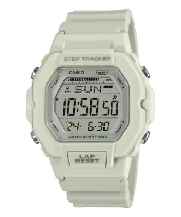 Keep in step and on track with function and style. Take control with the support you need to stay healthy and manage your exercise. The step tracker automatically counts steps as soon as you start moving, thanks to the 3-axis accelerometer. Save up to 200 lap times on your watch, and track running times while displaying current time simultaneously. Steps taken are displayed in an easy-to-read bar graph, as well as past step logs, progress on workout goals, and other data. LED lighting makes sure all of this info is clearly visible at your fingertips, even at night! More finely spaced holes in the band make subtle adjustments possible to ensure the most comfortable, precision fit. And details like front buttons designed for easy operation even while running are sure to make this timepiece a favorite. Choose one of three simple colors for a timepiece sure to become your favorite athleisure fashion accessory.