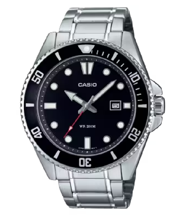 Take your full-metal analog style straight to the water. With water resistance up to 200 meters, a unidirectional rotating bezel, and screw-lock case back, this is a timepiece ready for whatever ocean sports or marine activities you are into. The sporty, yet classic design also features a handy date display, bringing practical utility to fashionable style.Case size (L? W? H)49.5 ? 44.2 ? 12.1 mm