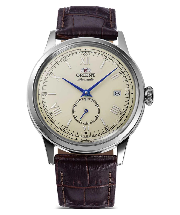 The Orient Bambino 38 Small Seconds brings a refined, vintage aesthetic to a modern “Goldilocks” case size. Measuring 38.4mm, this model addresses the demand for a more classic, proportional dress watch that fits comfortably on any wrist. The ivory sunray dial is accented by polished indices and striking blue hands, creating a sophisticated contrast. A dedicated small seconds sub-dial at the 6 o’clock position adds a layer of horological complexity, while the signature domed mineral crystal provides a warm, retro silhouette. Powered by an in-house Japanese automatic movement with hacking and hand-winding capabilities, it offers exceptional craftsmanship and reliability at an accessible price point.