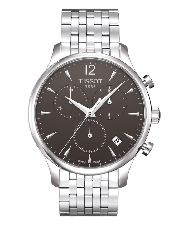 The Tissot T063.617.11.067.00 is a stylish and sophisticated men’s chronograph from the T-Classic Tradition collection, known for blending modern Swiss quartz watchmaking with a vintage-style design signature. It features a robust stainless steel case and bracelet, a scratch-resistant sapphire crystal, and an attractive anthracite dial, making it a versatile accessory suitable for both formal and casual occasions.