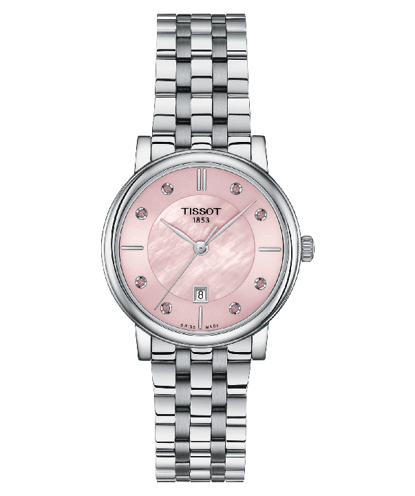 The Tissot Carson Premium Lady (T122.210.11.159.00) offers a rare combination of simplicity and elegance. The dial features a subtle play on finishes, with an external satinated sunray finish and an inner spiral finish that gives it depth. The slender, curved hands and elegant double gadroon bezel accentuate its graceful design, making it a versatile accessory suitable for any occasion, from formal events to casual wear.