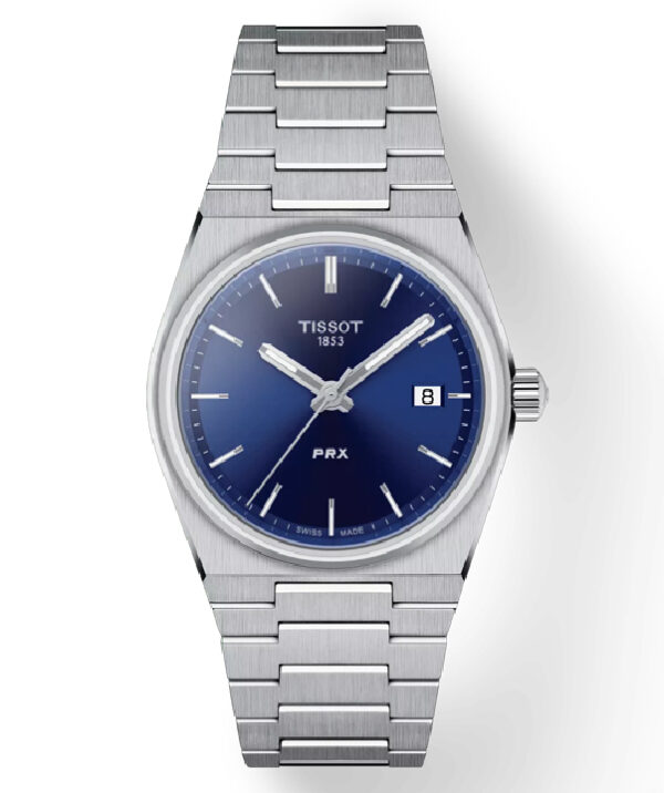 Description | Celebrating the comeback of the PRX, this slim and evocative design combines style and Swiss precision. Features a 34.6mm steel case, blue dial, and quartz movement with EOL indicator. |