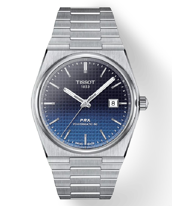 Description This 40mm PRX Powermatic 80 features a captivating gradient dial that plays with light and color, creating a stunning dusk-to-dawn effect. Designed for urban professionals, it combines sleek aesthetics with high-end mechanics. The sapphire crystal ensures lasting clarity and durability, while the Powermatic 80 automatic movement offers an impressive 80-hour power reserve.