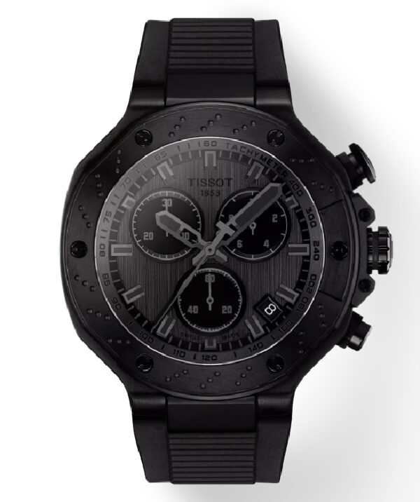 Tissot has drawn inspiration from its partnership with motorcycle racing to create a watch that reflects the dynamism of motorcycles and the emotion of the sport. The watch is water-resistant up to a pressure of 10 bar (100 m), equipped with a quartz chronograph movement and hour and minute hands coated with Super-LumiNova.
