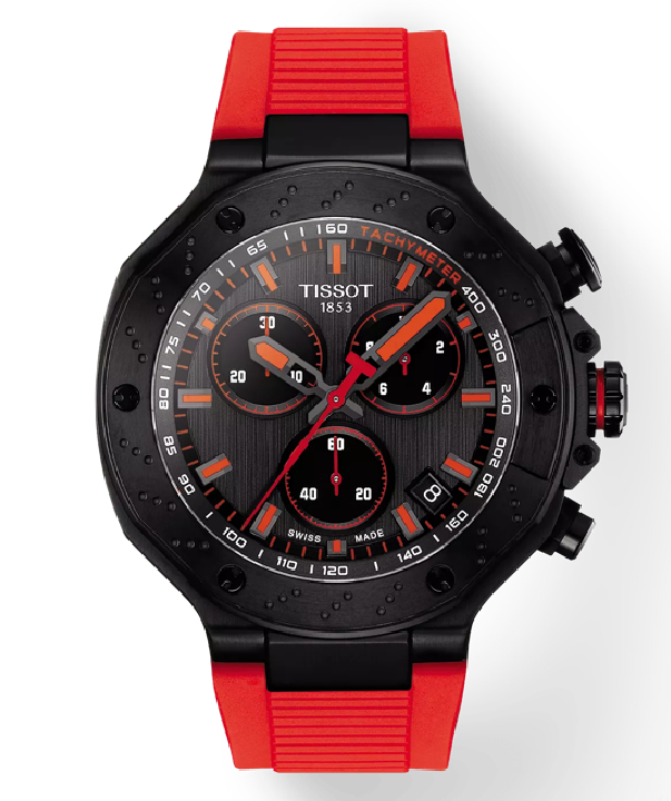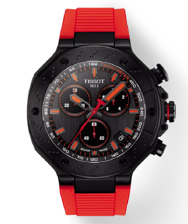Thanks to its new design, the Tissot T-Race Chronograph features a more elegant dial, without denying its sporting roots. Tissot has drawn inspiration from its partnership with motorcycle racing to create a watch that reflects the dynamism of motorcycles and the emotion of the sport. The watch is water-resistant up to a pressure of 10 bar (100 m), equipped with a quartz chronograph movement and hour and minute hands coated with Super-LumiNova®.